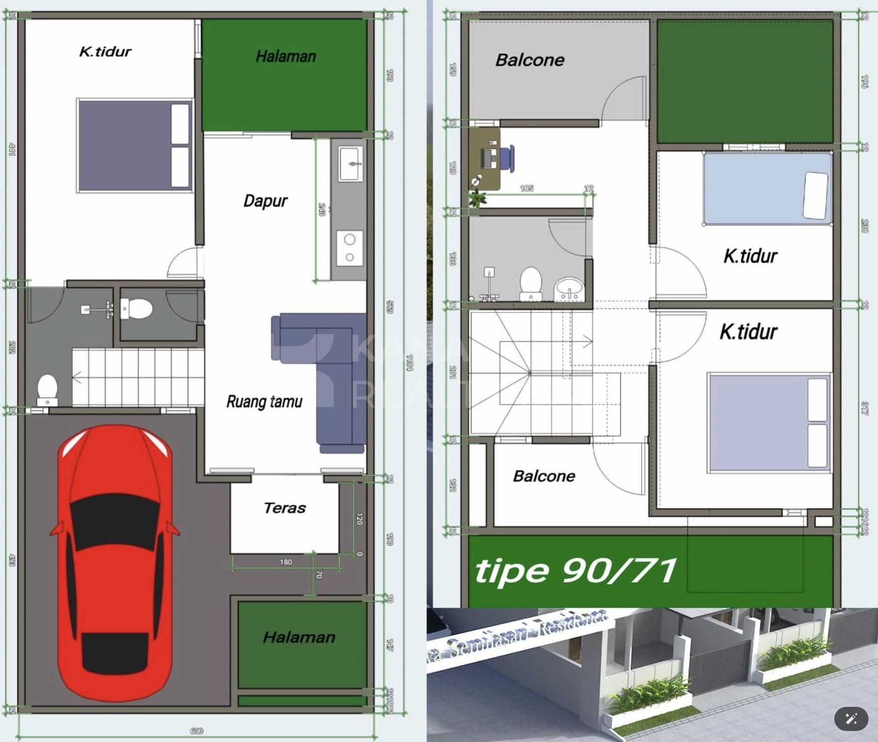 – Luas Bangunan mulai: 80 m² (2 lantai)